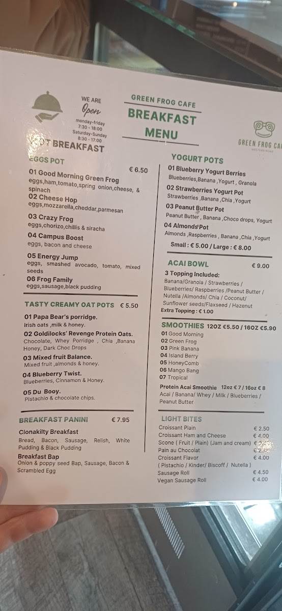 The Green Frog Cafe Menu